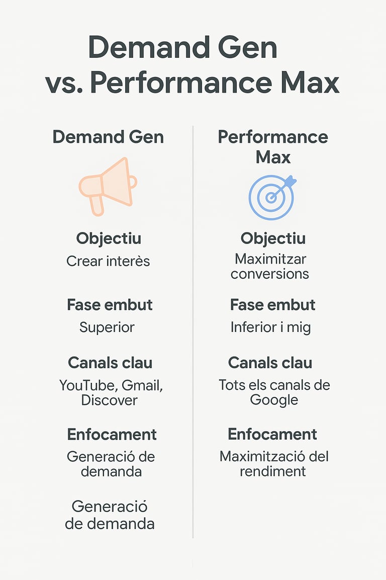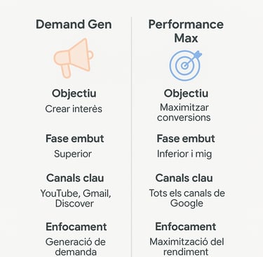 🔍 Demand Gen i Performance Max (PMax): dues eines potents, dos objectius diferents